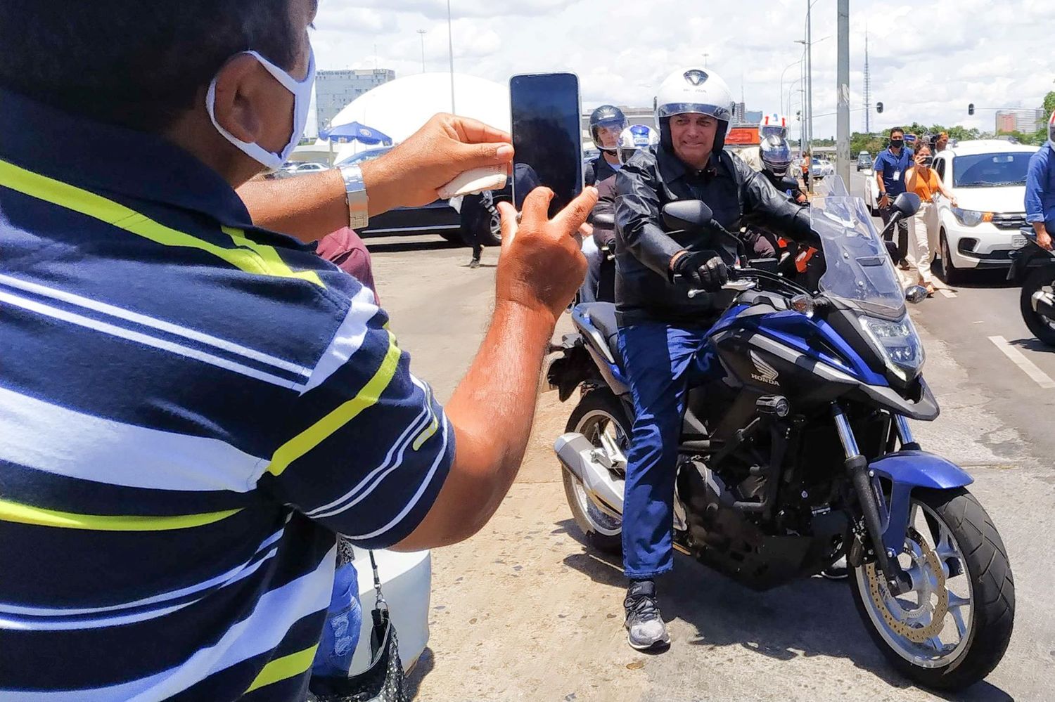 Bolsonaro harangue la foule à moto en pleine pandémie. Vamos mostrar ao brasil e ao mundo o apoio enorme dos brasileiros ao presidente bolsonaro.faça o vídeo na horizontal e não se esqueça de dizer seu nome, cida. Le président brésilien jair bolsonaro a pris la tête dimanche matin d'un cortège de plusieurs milliers de motos défilant dans les rues de rio de janeiro pour une manifestation en son soutien, causant de nombreux rassemblements en pleine pandémie. Plusieurs milliers de motards ont défilé ce dimanche 23 mai à rio de janeiro, en soutien à jair bolsonaro. En moto, bolsonaro volvió a desafiar a la pandemia y le pusieron una multa.